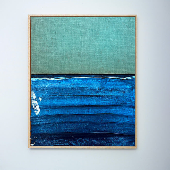 'Corduroy' is a unique mixed media collage from a series in which Dim Rooker captures the space and atmosphere of his explorations of coastlines.