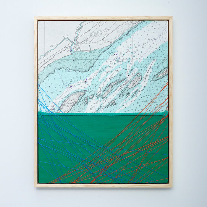 Dim Rooker, born in 1972 in The Netherlands, creates mixed media collages that reflect the space and atmosphere of his hometown, Scheveningen. His raw graphical compositions, crafted from items collected along the shoreline, infuse his work with a profound sense of adventure, evoking the exploration of coastlines and the sea.