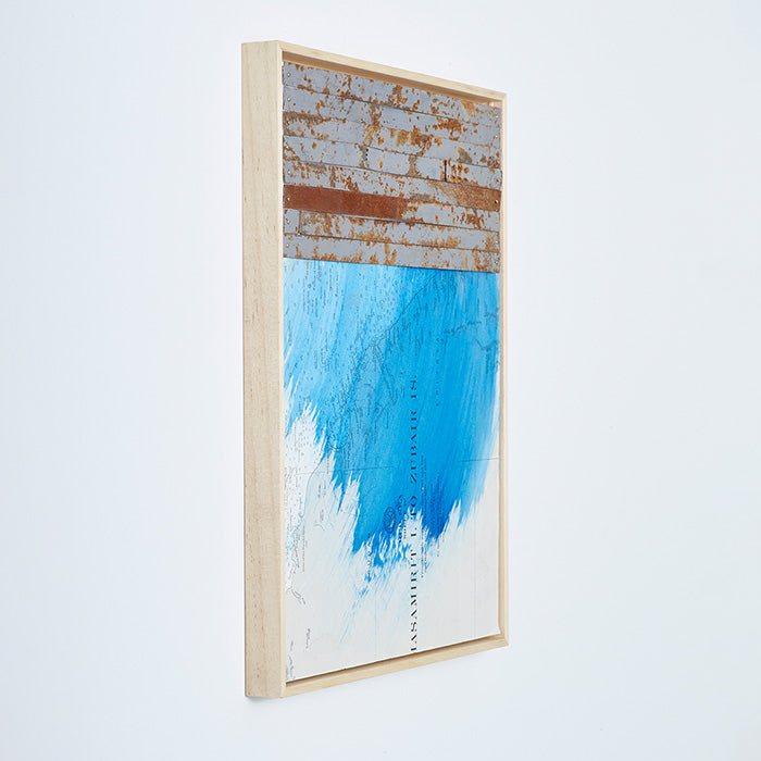 'Gravity' is a unique mixed media collage from a series in which Dim Rooker captures the space and atmosphere of his coastal explorations.